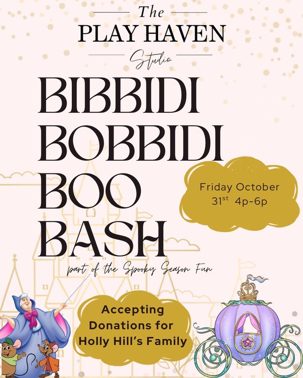Join us for our Bibbidi Bobbidi Boo Bash — a free community event filled with fun, costumes, and kindness. We’re coming together to support the family of Holly Hill, and Play Haven will double every donation made today. Let’s wrap this family in love and show what our community can do when we come together.